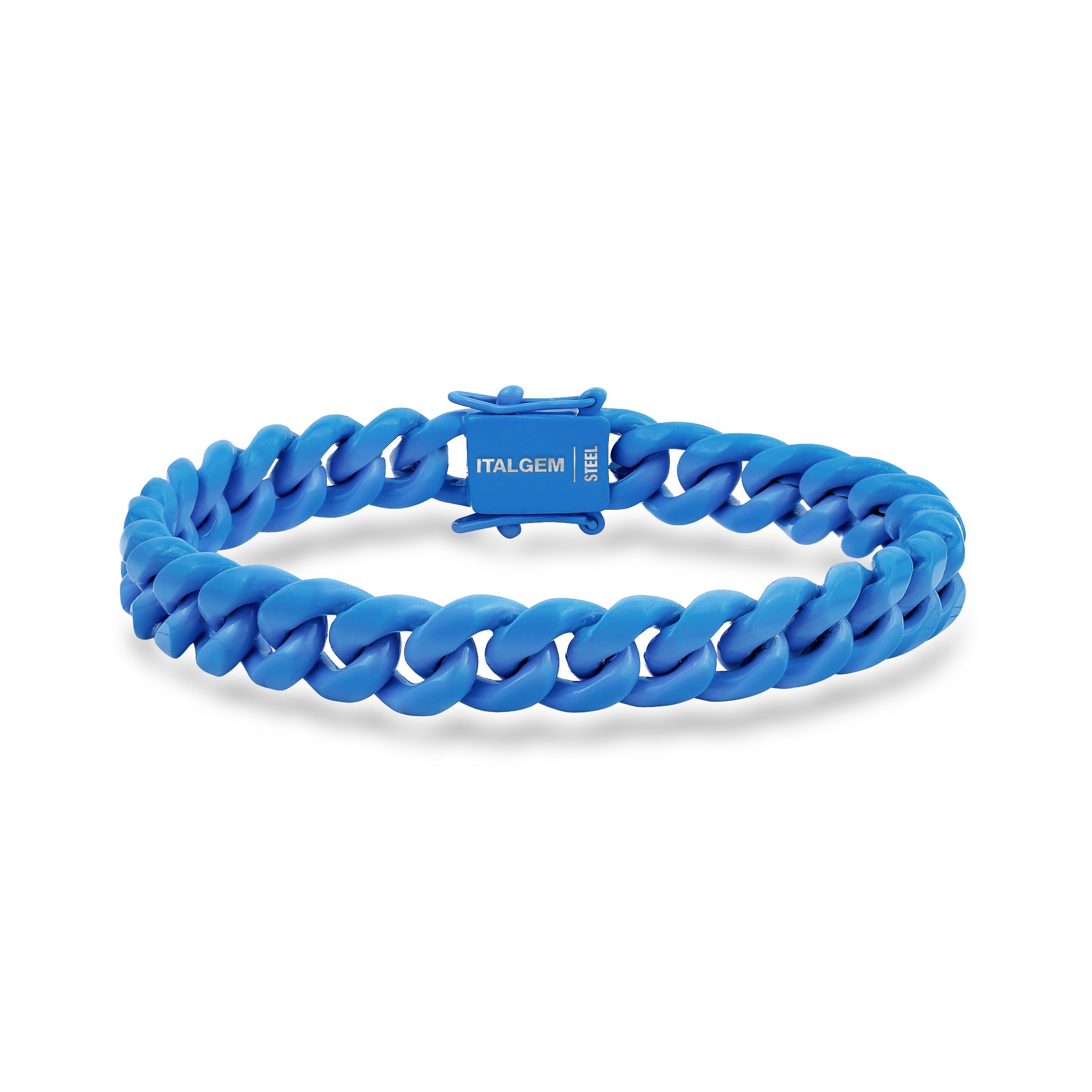Show off your style with this 10MM CANDY CUBAN BRACELET in tonal shades of Army Green, White, Cielo Blue, and Valiryan Grey! Make a statement with this stylish piece - perfect for any occasion and sure to make a statement no matter where you go!