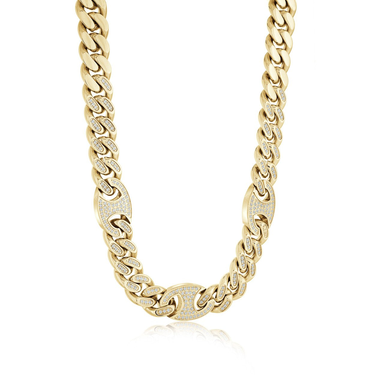 14K Gold Half Iced Mariner Chain 10mm