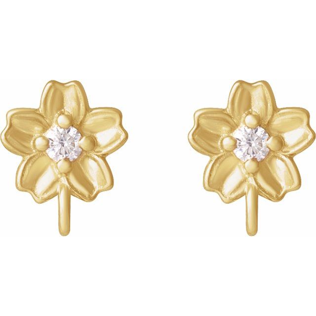 14K .02 CT Lab-Grown Diamond Floral Earring Top - 14K Yellow