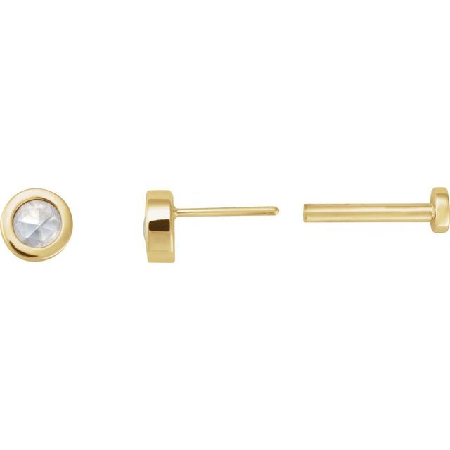 Description : .06 Ct Natural Rosecut Diamond Bezel-Set Earring With Press Fit Back