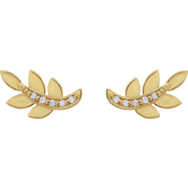 14K .07 CTW Natural Diamond Leaf Earrings - 14K Yellow