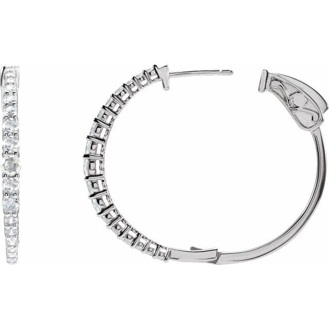 14K 1 1/3 CTW Natural Diamond Hoop Earrings - 14K White / 30 Mm / 3 Mm