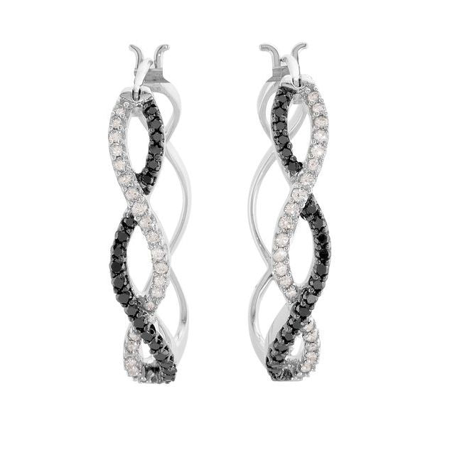 14K 1/2 CTW Black & Natural Diamond Hoop Earrings - 14K White