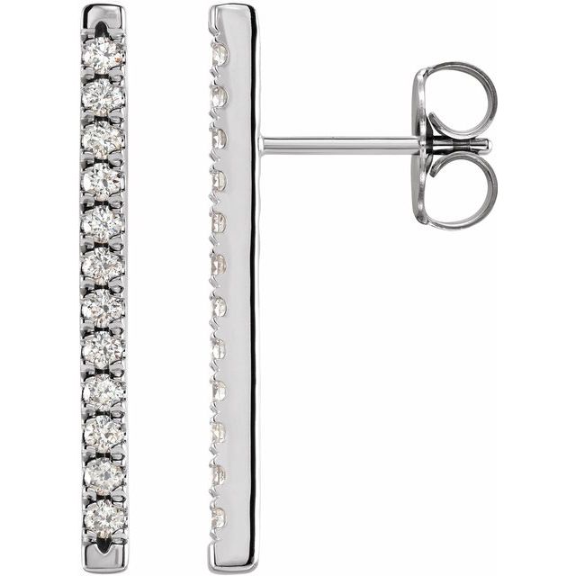 14K 1/3 CTW Natural Diamond French-Set Bar Earrings - 14K White