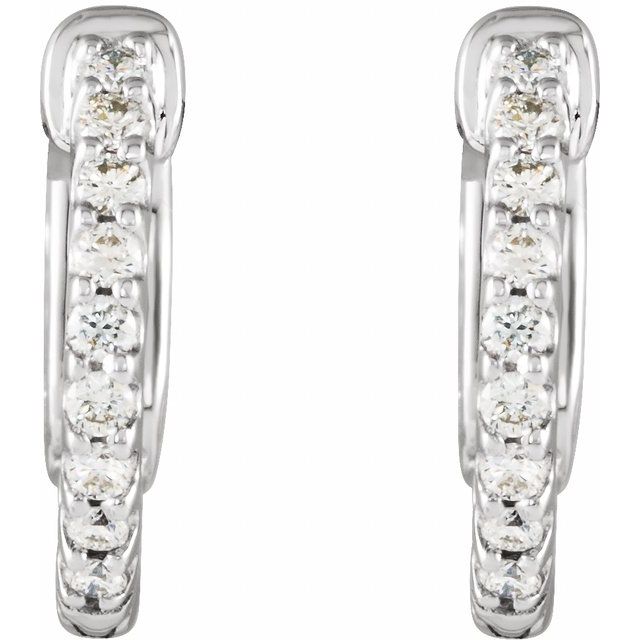 14K 1/4 CTW Natural Diamond Inside-Outside Hinged Hoop Earrings - 14K White / 14.5 Mm / 1.5 Mm
