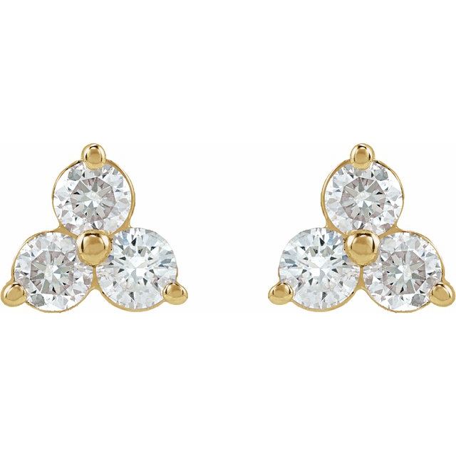 14K 1/5 CTW Natural Diamond Three-Stone Cluster Earring - 14K Yellow