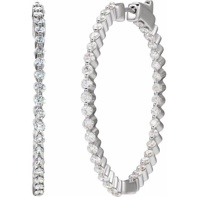 Description : 2 Ctw Natural Diamond Inside-Outside Hinged Hoop Earrings