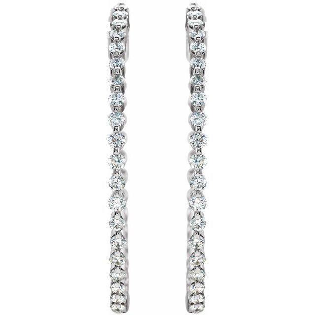 14K 2 CTW Natural Diamond Inside-Outside Hinged Hoop Earrings - 14K White / 36.9 Mm / 2.5 Mm