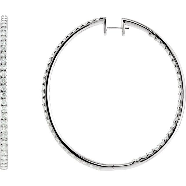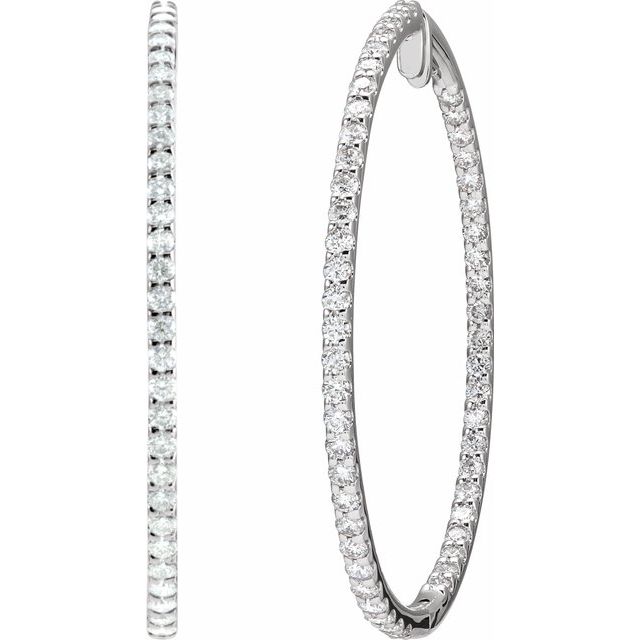 14K 5 CTW Natural Diamond Inside-Outside Hoop Earrings - 14K White / 51 Mm / 2.4 Mm