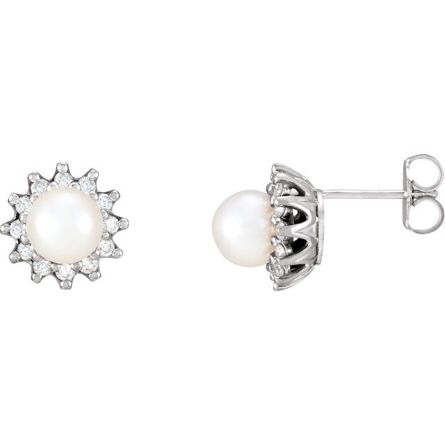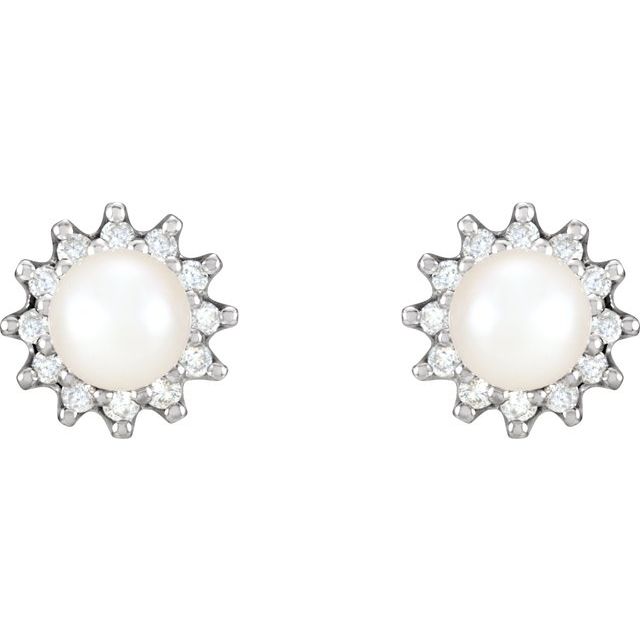 14K Cultured Akoya Pearl & 1/3 CTW Natural Diamond Earrings - 14K White