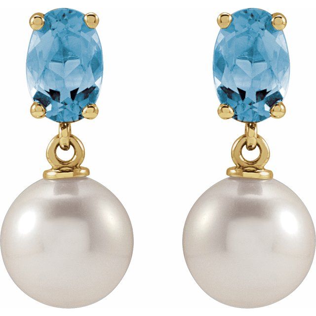 14K Cultured Akoya Pearl & Natural Aquamarine - 14K Yellow