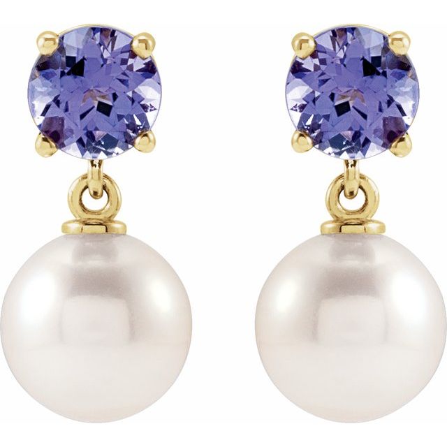 14K Cultured Akoya Pearl & Natural Tanzanite - 14K Yellow