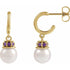 14K Cultured Freshwater Pearl & Lab-Grown Purple Sapphire Hoop Earrings - 14K Yellow