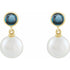 14K Cultured Freshwater Pearl & Natural London Blue Topaz Cabochon Earrings - 14K Yellow