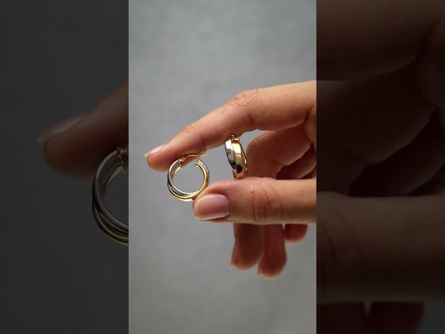 14K / Double Tube Hoop Earrings - 14K Yellow/White / 15 Mm / 5.7 Mm
