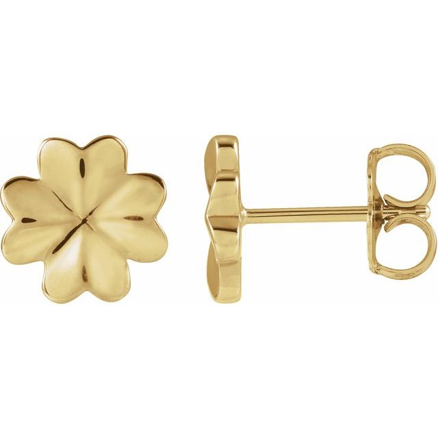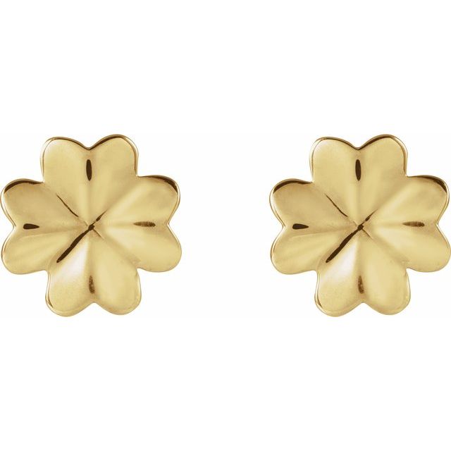 14K Four Leaf Clover Stud Earrings - 14K Yellow