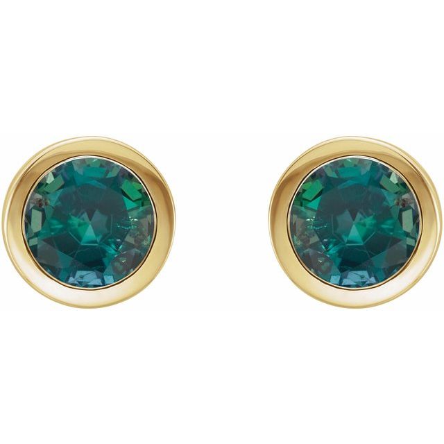 14K Lab-Grown Alexandrite Bezel-Set Earrings - 14K Yellow