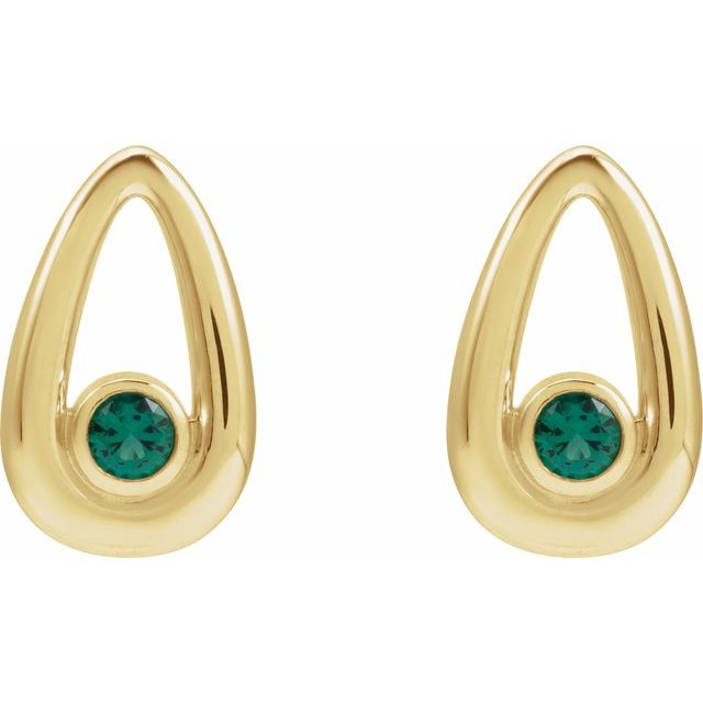14K Lab-Grown Emerald Geometric Earrings - 14K Yellow