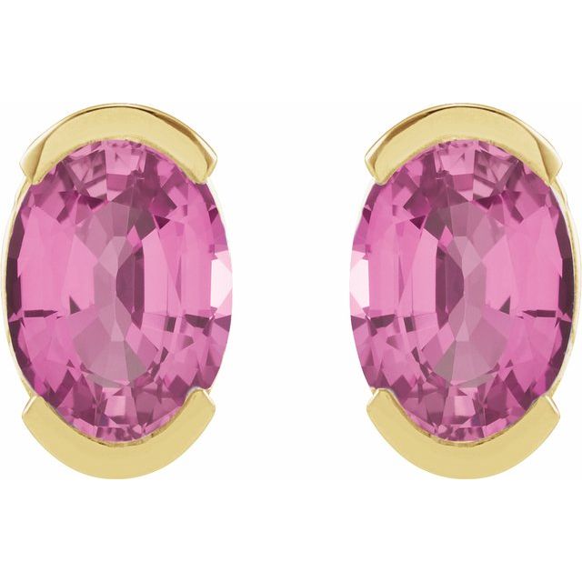 14K Lab-Grown Pink Sapphire Stud Earrings - 14K Yellow