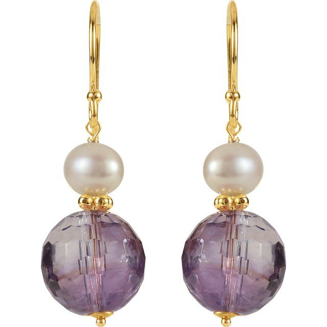 14K Natural Amethyst & Cultured Freshwater Pearl Earrings - 14K Yellow