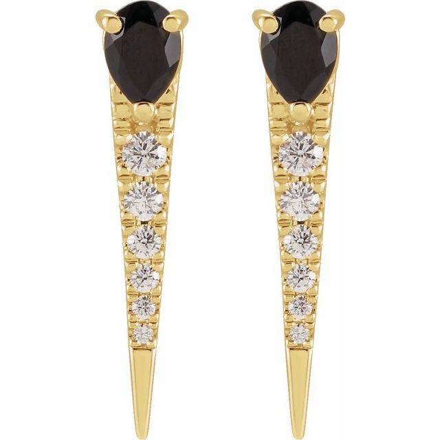 14K Natural Black Onyx & 1/8 CTW Natural Diamond Spike Earrings - 14K Yellow
