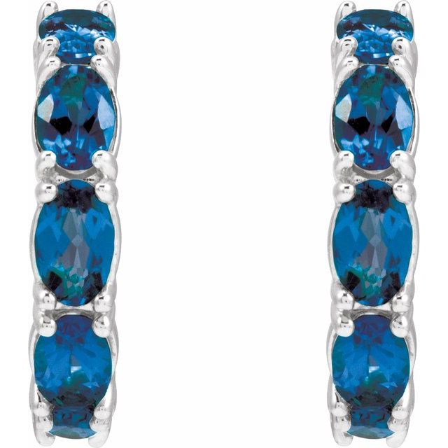 14K Natural Blue Sapphire Hoop Earrings - 14K White / 18.2 Mm / 3.5 Mm