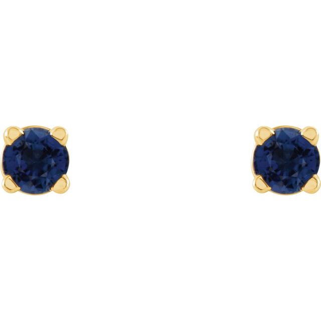 14K Natural Blue Sapphire Stud Earrings - 14K Yellow