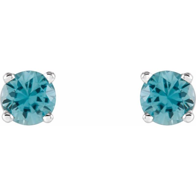 14K Natural Blue Zircon Stud Earrings - 14K White
