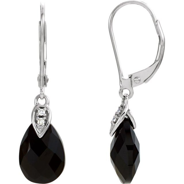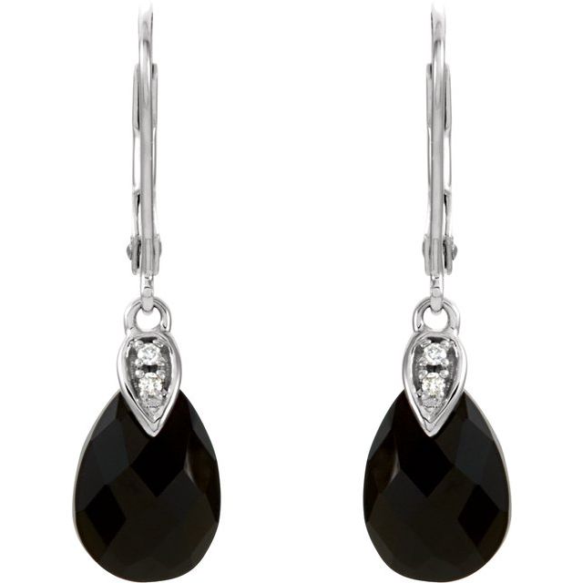 14K Natural Briolette Onyx & .025 CTW Natural Diamond Earrings - 14K White