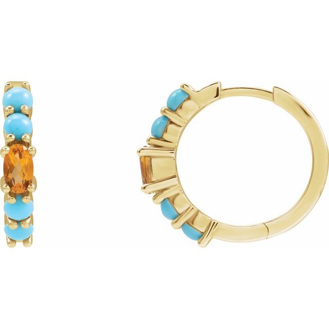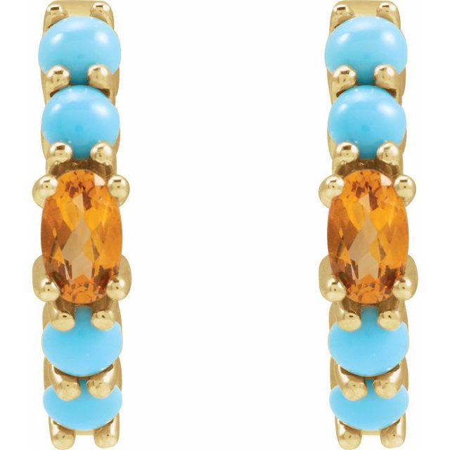14K Natural Citrine & Natural Turqouise Hoop Earrings