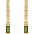 Description : Natural Green Tourmaline And .08 Ctw Natural Diamond French-Set Dangle Hoop Earrings