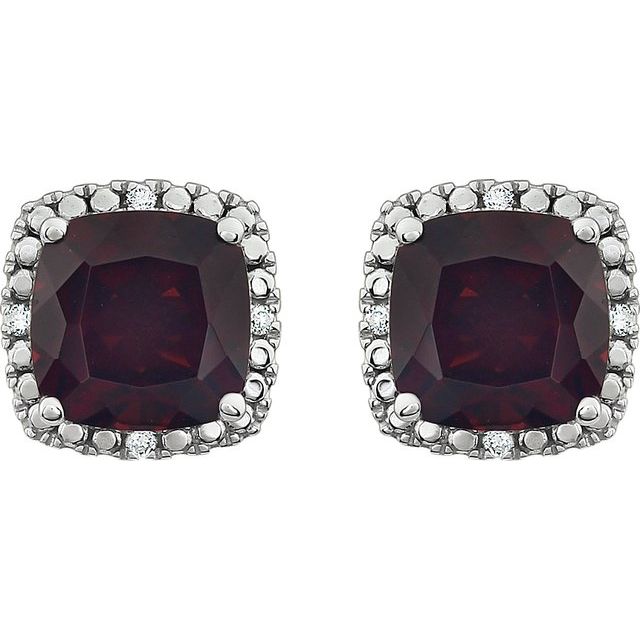 14K Natural Mozambique Garnet & .06 CTW Natural Diamond Earrings - 14K White