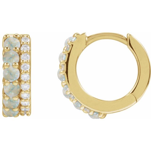 14K Natural Opal & 1/8 CTW Natural Diamond Huggie Hoop Earrings