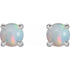 14K Natural Opal Cabochon Stud Earrings - 14K White