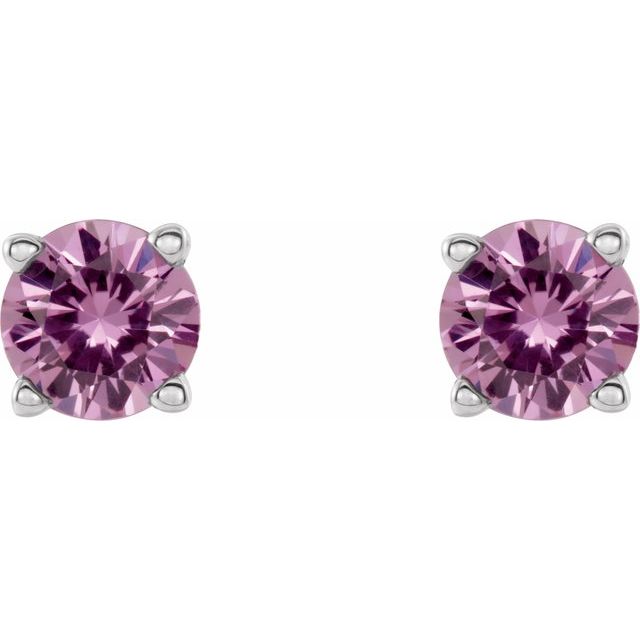 14K Natural Pink Sapphire Stud Earrings - 14K White