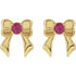 14K Natural Pink Tourmaline Bow Stud Earrings - 14K Yellow