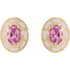 14K Natural Pink Tourmaline & Pink Enamel Stud Earrings - 14K Yellow