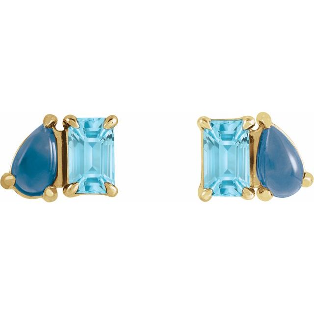 14K Natural Sky Blue Topaz & Natural London Blue Topaz Two-Stone Stud Earrings