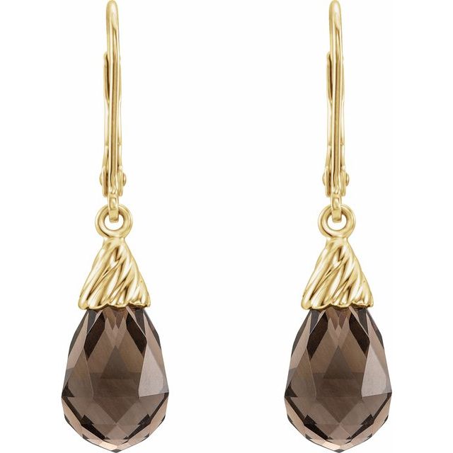 14K Natural Smoky Quartz Briolette Lever Back Earrings - 14K Yellow