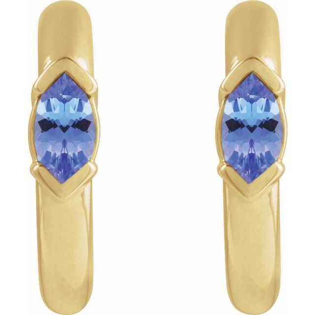 14K Natural Tanzanite Hoop Earrings - 14K Yellow / 10 Mm / 2 Mm