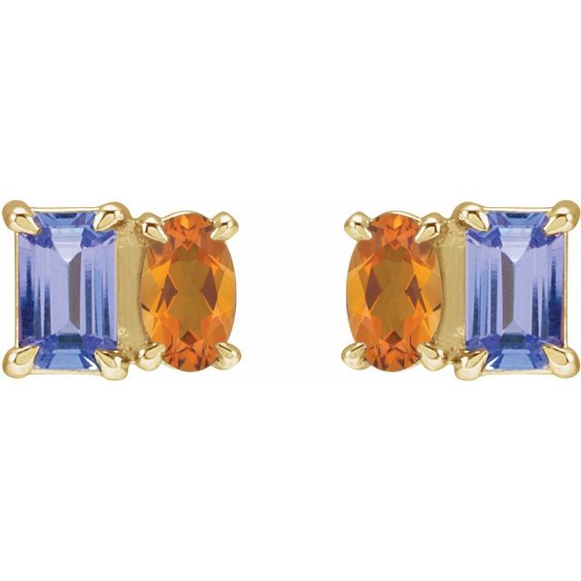 14K Natural Tanzanite & Natural Citrine Two-Stone Stud Earrings