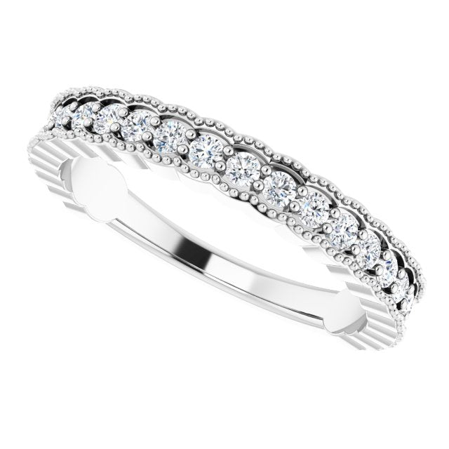 14K White 1/2 CTW Diamond Milgrain Matching Band