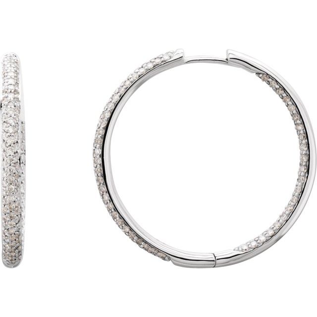 18K 1 1/2 CTW Natural Diamond Inside-Outside Hinged Hoop Earrings - 18K White / 28 Mm / 3.1 Mm