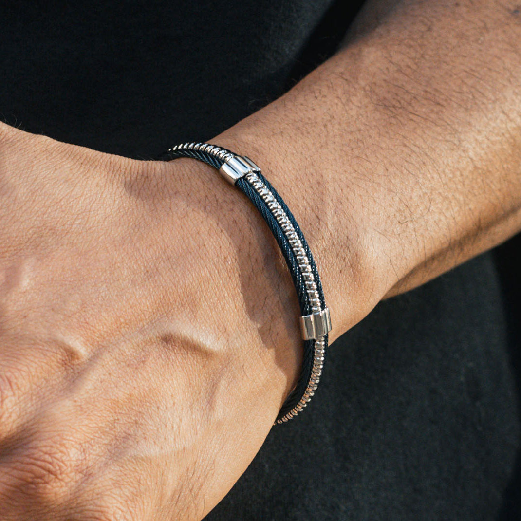 3 Row Coil Cable Bangle - 8.27 INCHES / BLUE