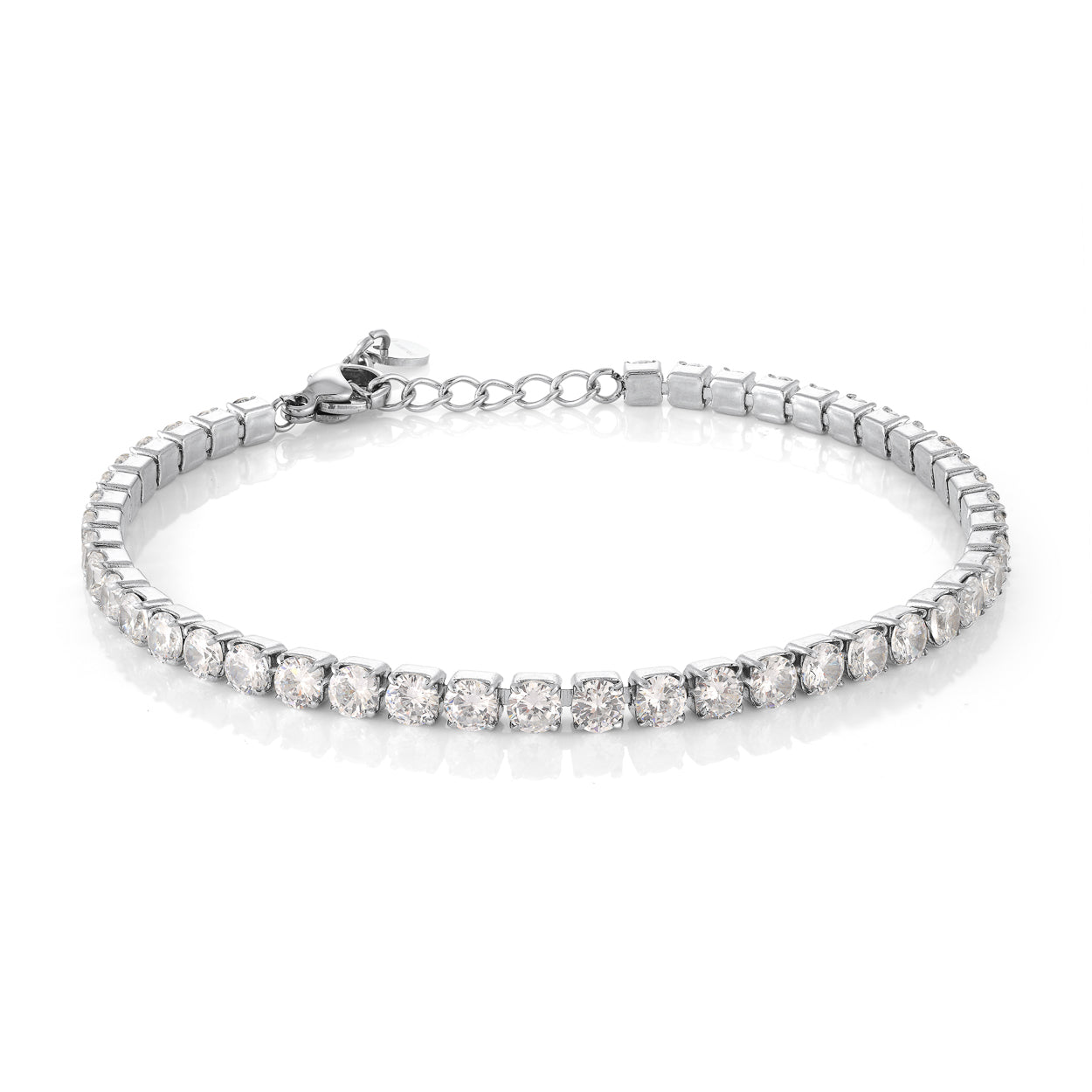 Tennis Bracelet 3mm - 6.5+1.5 INCHES / SILVER / WHITE