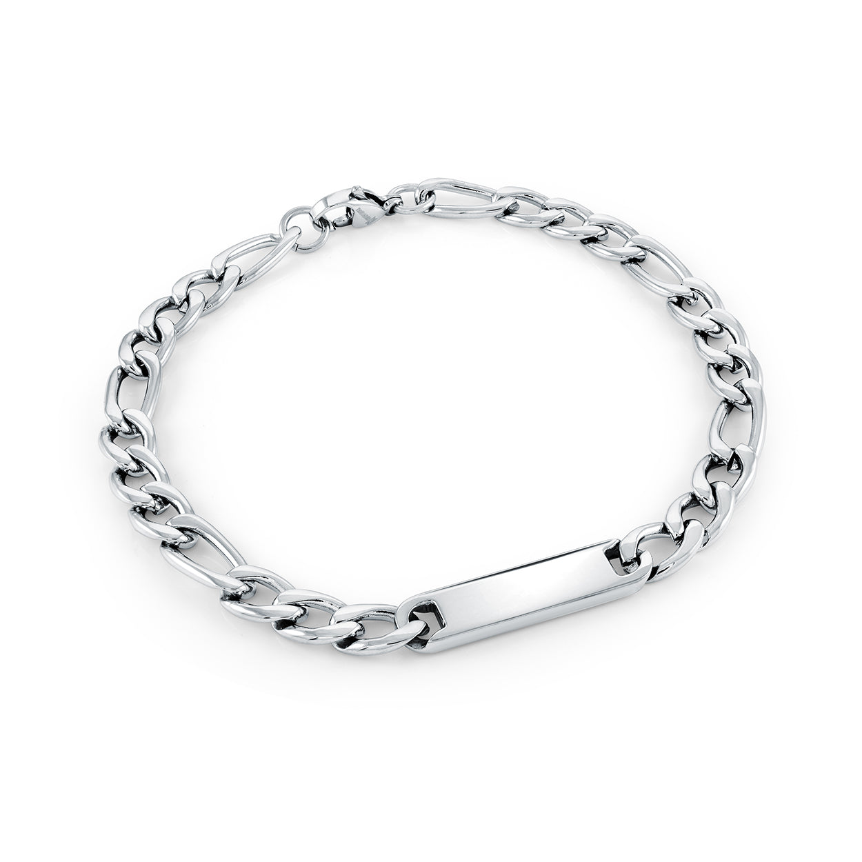 Engravable Figaro Bracelet 6mm - 8 INCHES-1 PLATE / SILVER