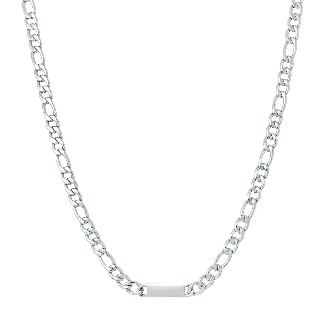 Engravable Figaro Chain 6mm - 22 INCHES-1 PLATE / SILVER