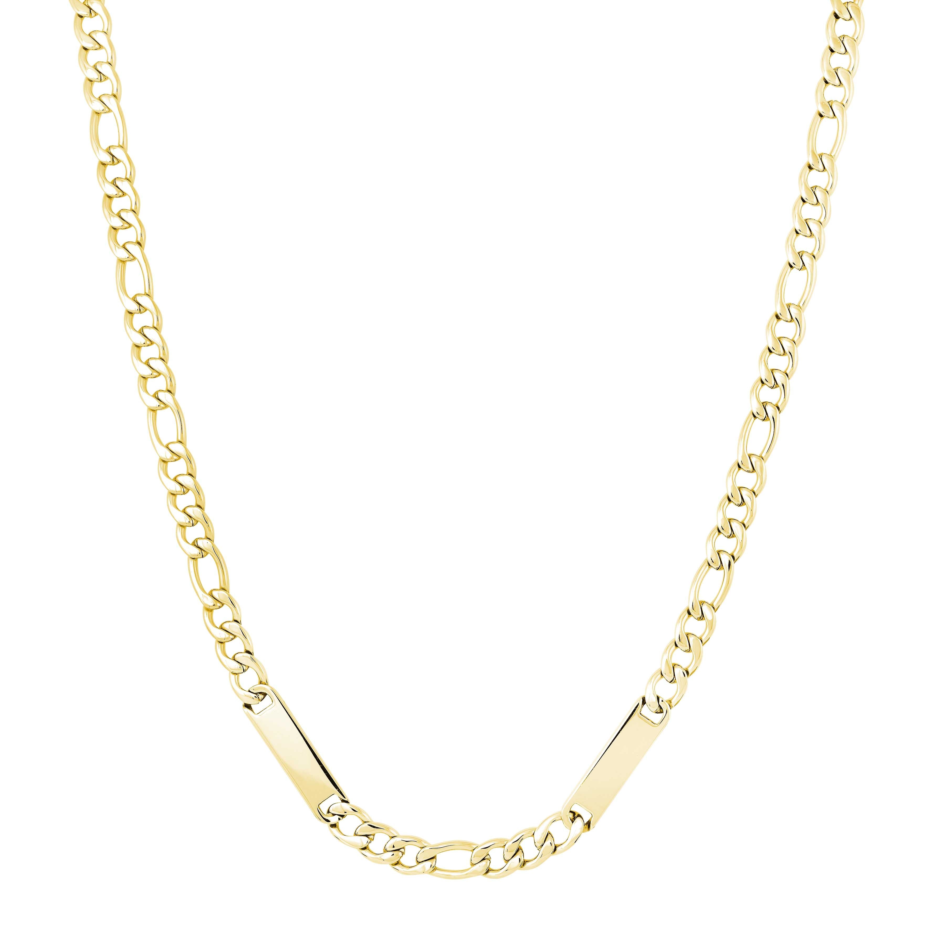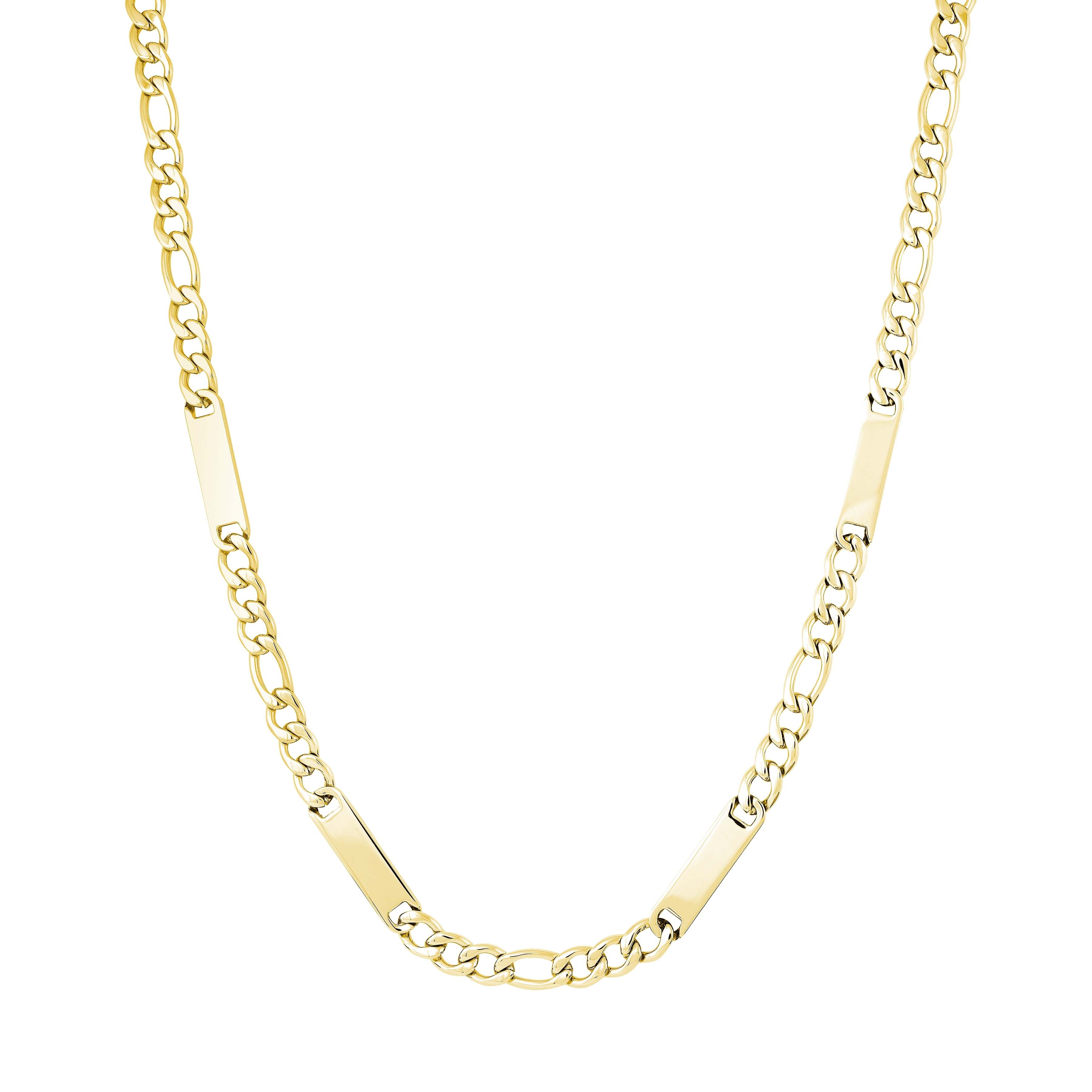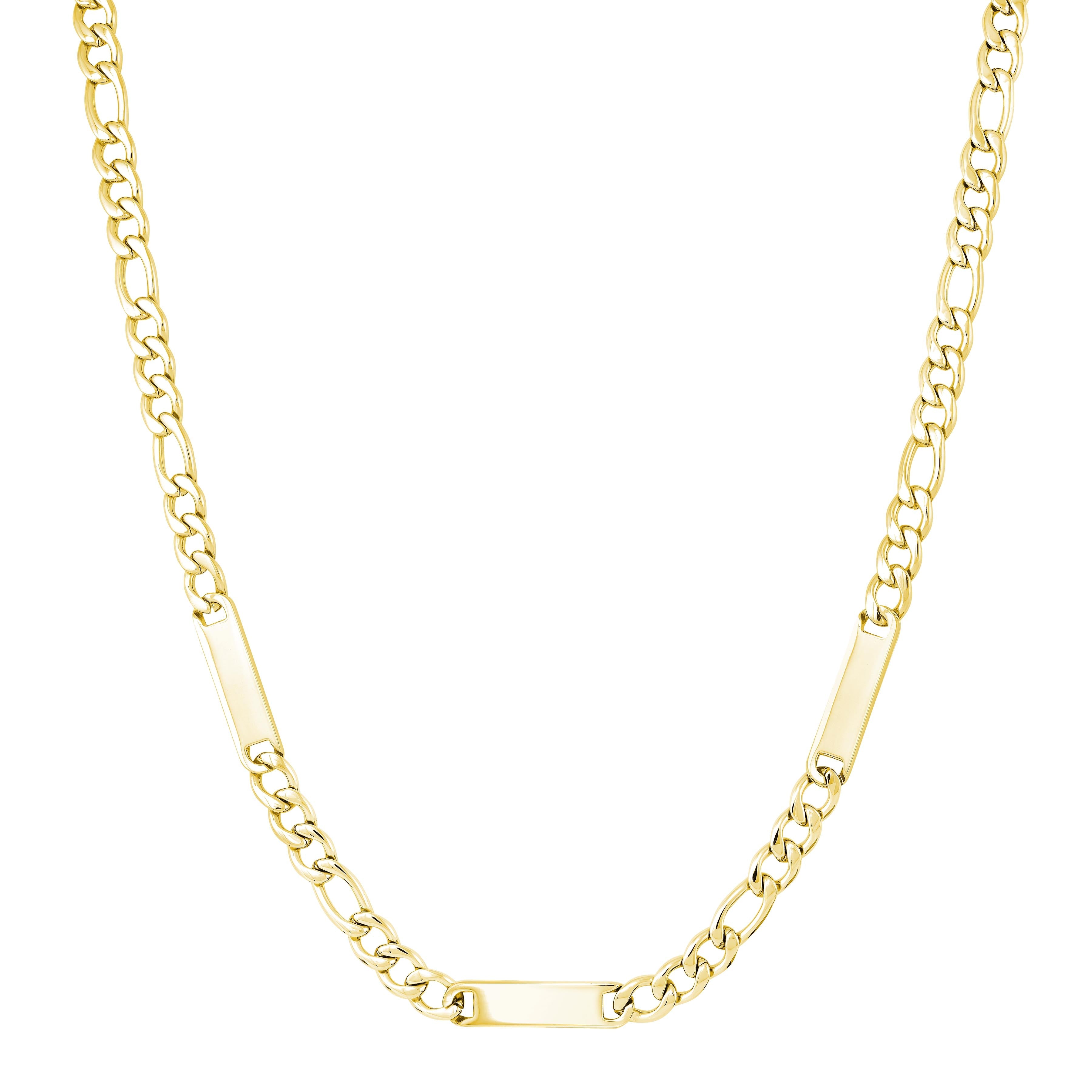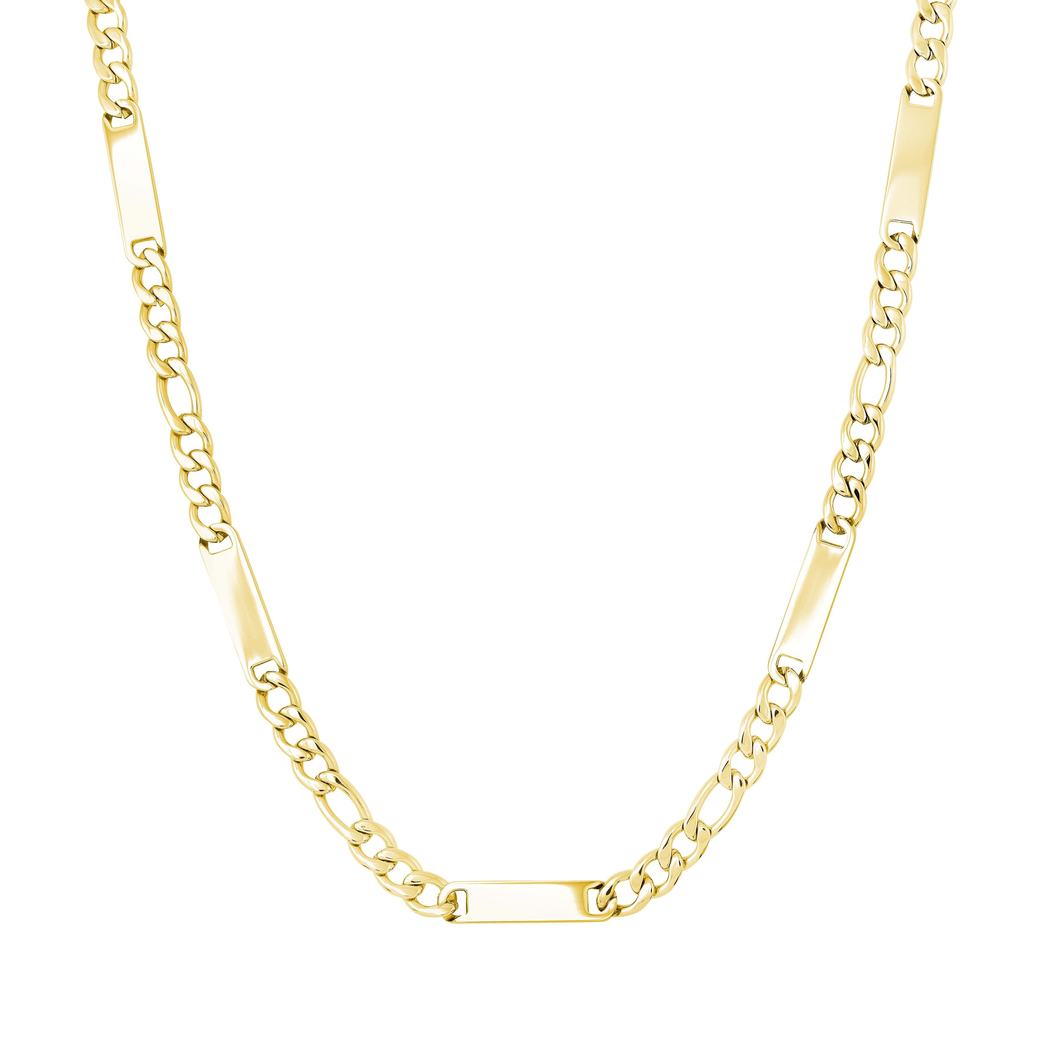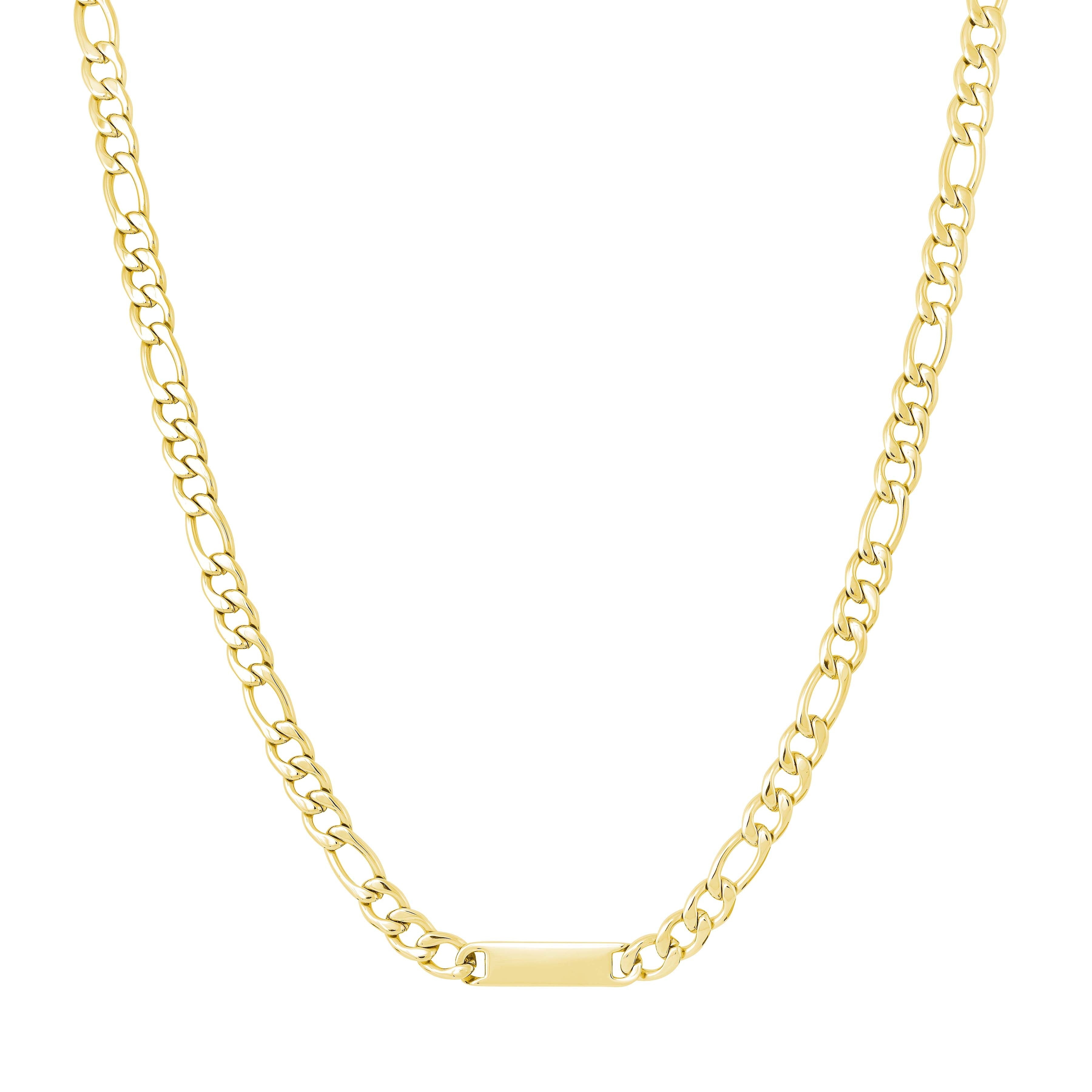 This 6mm Engravable Figaro Chain allows for personalization with 1 to 5 plates. The classic Figaro style adds elegance to any outfit, while the option for engraving makes it a thoughtful and unique gift. Made with durable materials, this chain is a timeless and versatile accessory.