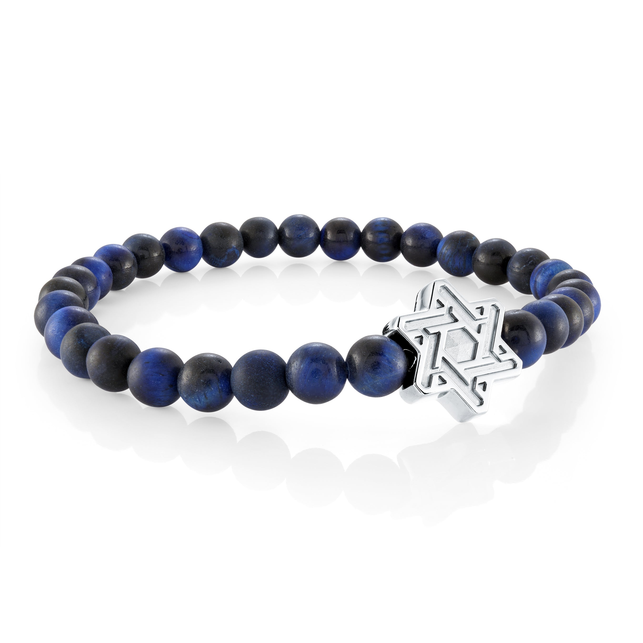 Blue Tiger Eye Beaded Star Of David Bracelet