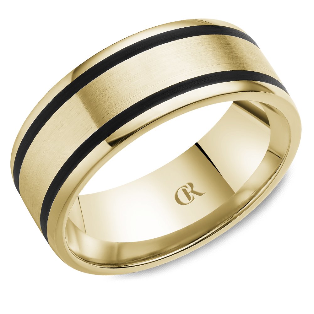 An 8.00mm CR Collection Wedding Band in Yellow with Black Enamel gold